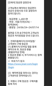 그리고 어제 문자로 다 받으셨을것같아요. 문의게시판에 변경신청을 받는 다는 진에어 공지 문자가 한번 더 발송했습니다.